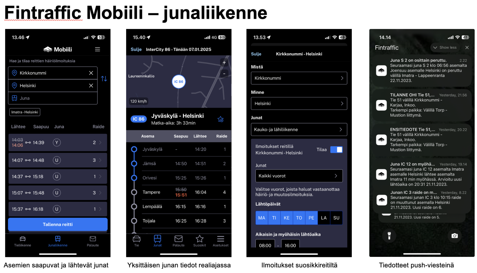 - Junaliikenteen häiriötiedotteet reaaliajassa