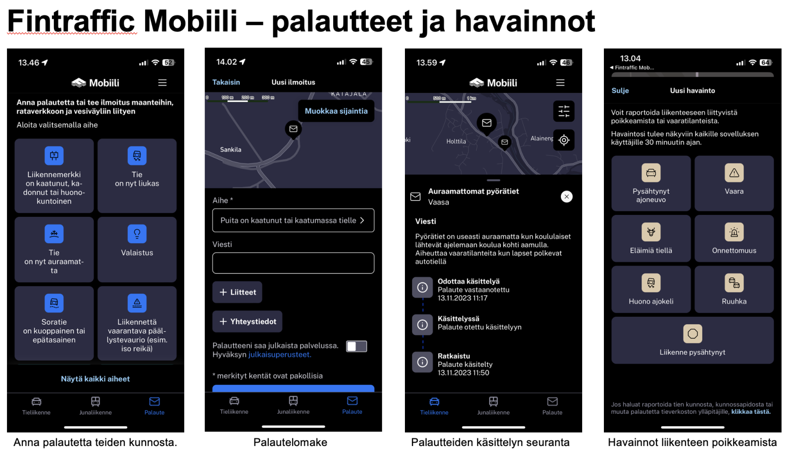 - Lähetä palautetta liikenneväylien kunnosta tai ilmoita häiriöistä