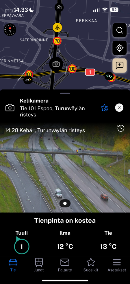 Kaikki olennainen tieto liikenteeseen ja mahdollisuus antaa palautetta