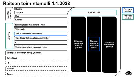 Fintrafficin raideliikenteenohjaus (Fintraffic Raide) uudistaa toimintamallinsa ja organisaationsa vuoden 2023 alussa. Uudistusta on valmisteltu syksyn kuluessa yhdessä eri toimintojen kanssa, ja uudistusta on käsitelty 4.11.2022 päättyneissä muutosneuvotteluissa.
