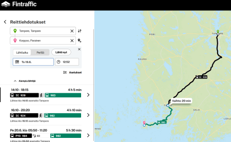 Lue lisää palvelun mahdollisuuksista täältä: Fintraffic Matka -reittiopas | Fintraffic