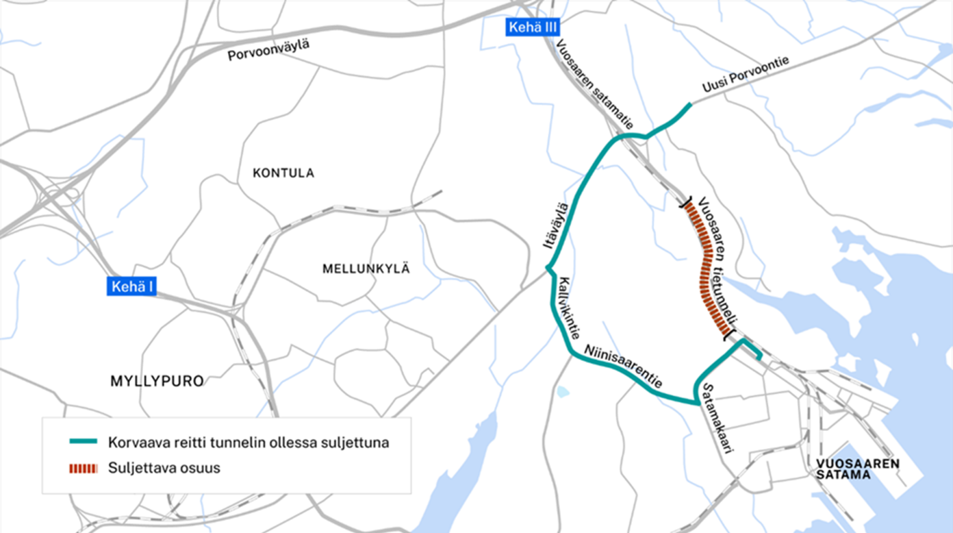 Helsingin Vuosaaren satamaan johtavan tietunnelin turvallisuus- ja liikenteen hallinnan tekniikka ovat tulossa elinkaarensa päähän, ja nämä uudistetaan. Suunnitelmien mukaan rakennustyöt tunnelissa käynnistyvät vuoden 2025 aikana. Työt edellyttävät myös tunnelin väliaikaisia pidempikestoisia sulkuja. ELY-keskus ja Fintraffic valmistelevat parhaillaan hankkeen toteutusta, ja yhdessä Helsingin kaupungin ja Helsingin Sataman kanssa haetaan vielä vaihtoehtoja, jotta liikenteen haitat saadaan minimoitua. Ensisijaisena kiertotienä toimii tunnelin nykyinen varareitti välillä Itäväylä–Kallvikintie–Niinisaarentie–Vuosaaren satama.