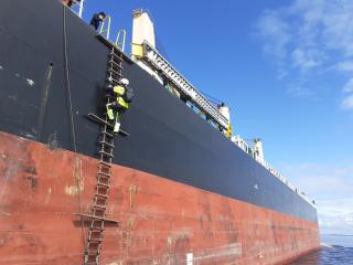 Seilin matkassa raskaita turvalaitteita huoltamassa