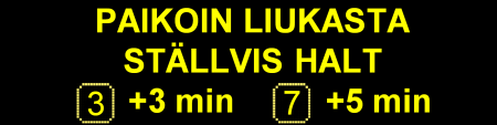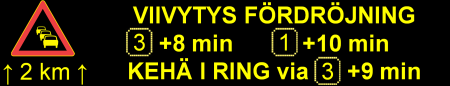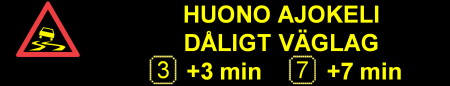 Vid halt väglag, när vägens temperatur är under +5 grader, kan skylten också meddela om enbart vägens och luftens temperaturer, om det är fråga om en trafikmässigt tyst tid (trafikmängden i körriktningen är under 500 fordon/h och situationen är rusningsfri (restiderna är +0 min).