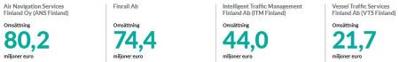 Tjänster för styrning av väg-, sjö- och järnvägstrafik som beställdes av Trafikledsverket utgjorde största delen av omsättningen. Värdet på försäljningen av dessa tjänster var 141 miljoner euro. Flygtrafiktjänster såldes till flygbolag för 59,0 miljoner euro och till Finavia för 16,2 miljoner euro.