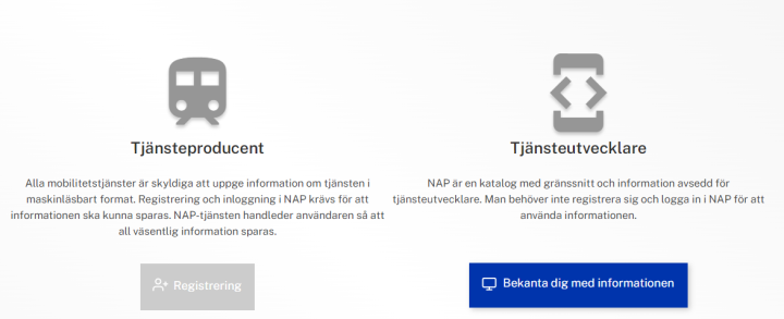 Fintraffic underhåller och driver FINAP-tjänsten. Tjänsten är avsedd för publicering och digitalisering av väsentlig information om mobilitetstjänster, såsom kollektiv-, taxi- och tågtransporter och förmedlingstjänst. Enheter som ansvarar för mobilitetstjänster, såsom myndigheter och företag, publicerar så kallad väsentlig information i FINAP, som förutom basinformation om företag och tjänster inkluderar rutter, tidtabeller, hållplatser, serviceområden, servicetider, priser och utvecklargränssnitt . Öppnande och delning av information baseras på inhemsk (t.ex. https://www.finlex.fi/fi/laki/ajantasa/2017/20170320) och EU:s lagstiftning och förordningar (t.ex. (https://eur-lex.europa. eu/eli/reg_del/2017/1926/oj).